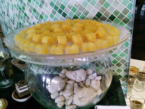 พอบอกน้องที่มาเก็บจาน น้องเค้าลองเอามีดหั่นและบอกว่าผมจะไปบอกเชฟให้ แว๊บเดียว หายวับไปทั้งถาดเลยค่ะ ยกเข้าไปเก็บหมดเลย
