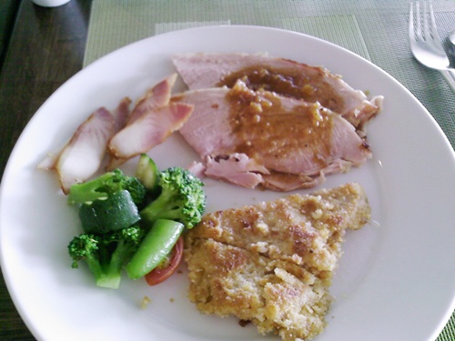 แฮม และปลาอินทรีรมควันอร่อยค่ะ ผักอบชีสก็ดี แต่หมูชุบแป้งขนมปังราดซอสส้มไม่สุก