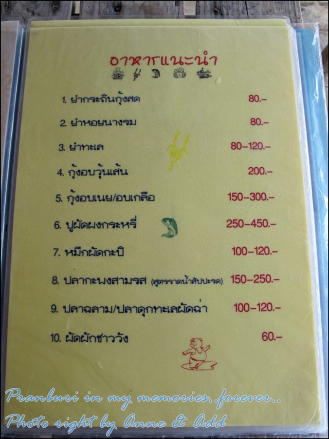 เมนู แต่ไม่มีราคาอาหารค่ะ แต่คิดว่าถูกเพราะทางรีสอร์ทเค้าแนะนำ