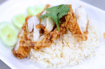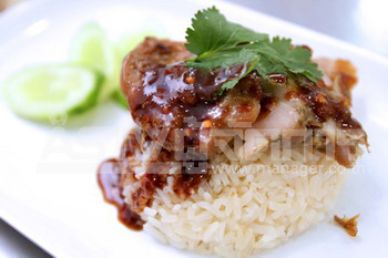 มี การควบคุมไฟทำให้หนังไก่ไม่แตกปริ เนื้อไก่นุ่มหวานกลมกล่อมรสชาติดี ในขณะที่ข้าวมันก็พิถีพิถันไม่แพ้กัน ทางร้านจะคัดสรรข้าวหอมมะลิคุณภาพดีเกรดพิเศษ