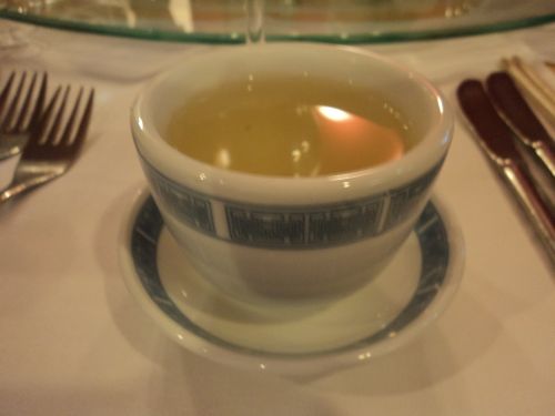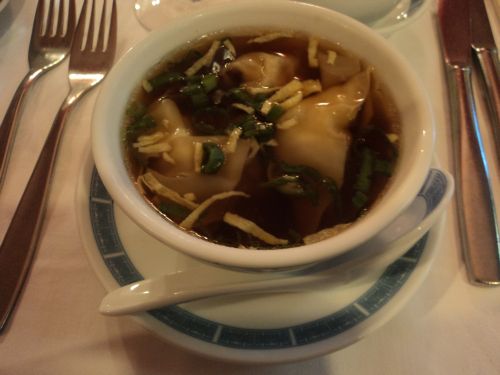 เริ่มต้นด้วยซุปร้อนๆ เป็นเกี๊ยวน้ำหมูค่ะ อร่อยใช้ได้เลยค่ะ