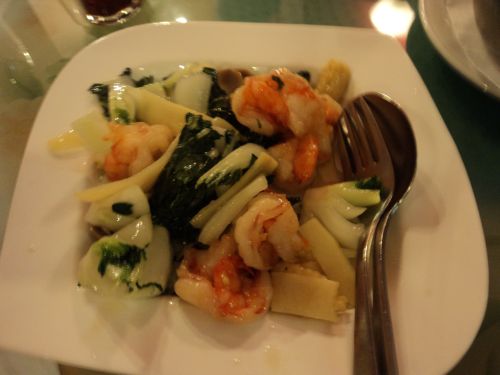 ตาม มาด้วยผัดผักรวมกับกุ้ง, เนื้อผัดซอส (นุ่มดีนะคะ) และสุดท้ายเป็นไก่ทอดผัดซอส คล้ายคาราเกะอ่ะค่ะ แต่เอาไปผัดกับซอส รสชาติใช้ได้เลย