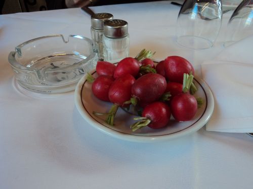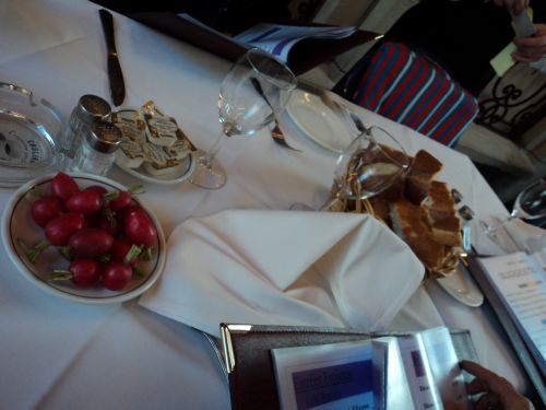 อุปกรณ์ กับเครื่องเคียงค่ะ raddish มั้งค่ะ ไม่ได้ชิม อ้อมีขนมปังกับเนยด้วย