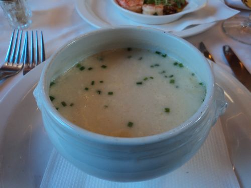 เรียกน้ำย่อยด้วยซุปครีมเอ็นหอย กับชีสทอด เรียกอะไรจำไม่ได้แล้วค่ะ ลืมสนิท