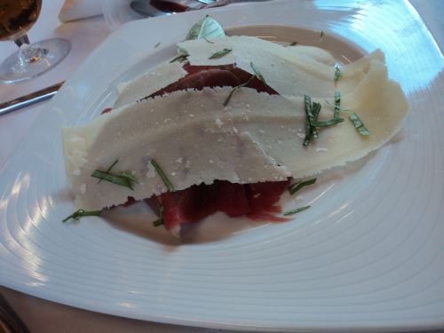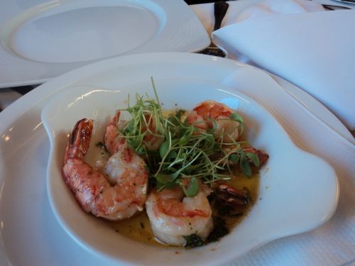 ตามด้วยกุ้งผัดน้ำมันมะกอก (กุ้งกรอบมาก), แฮมรมควันสไลด์กับชีสค่ะ