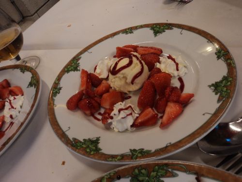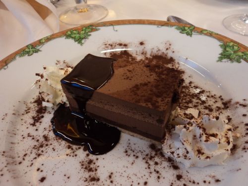 ตบท้ายด้วยของหวานกันค่ะ ด้วยมูสเค้กช้อคโกแลต กับไอศกรีมวนิลลาเสิร์ฟพร้อมสตอเบอรี่ อร่อยอีกแล้วค่ะ